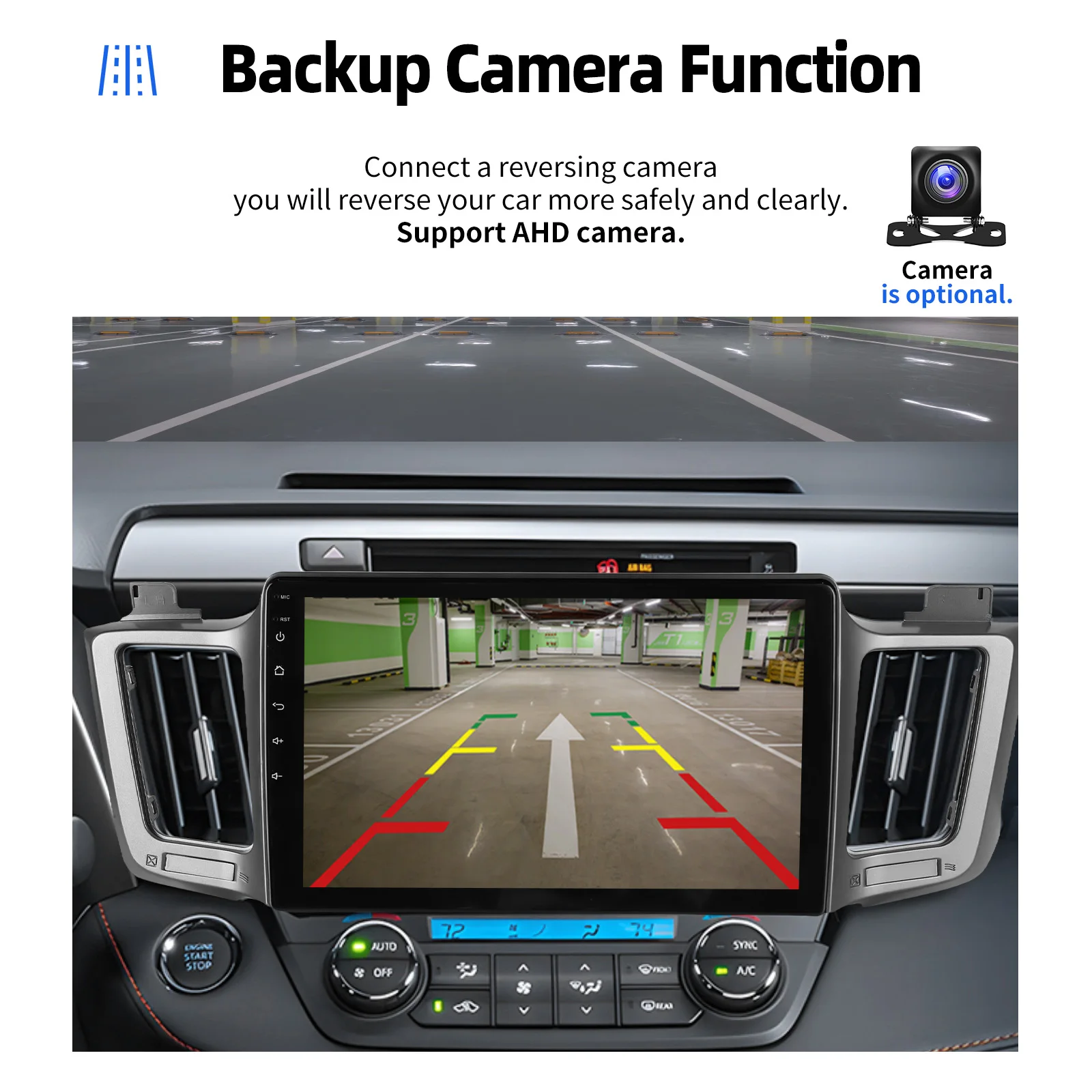 AHD / 4LED Rear View Camera Input (Optional) & Steering Wheel Control: After connecting to the rear view camera. The radio automatically displays the reversing image as soon as you engage reverse gear. Make your daily reversing safer. Support Rear View camera. Support original car steering wheel control to make driving more convenient and safer.