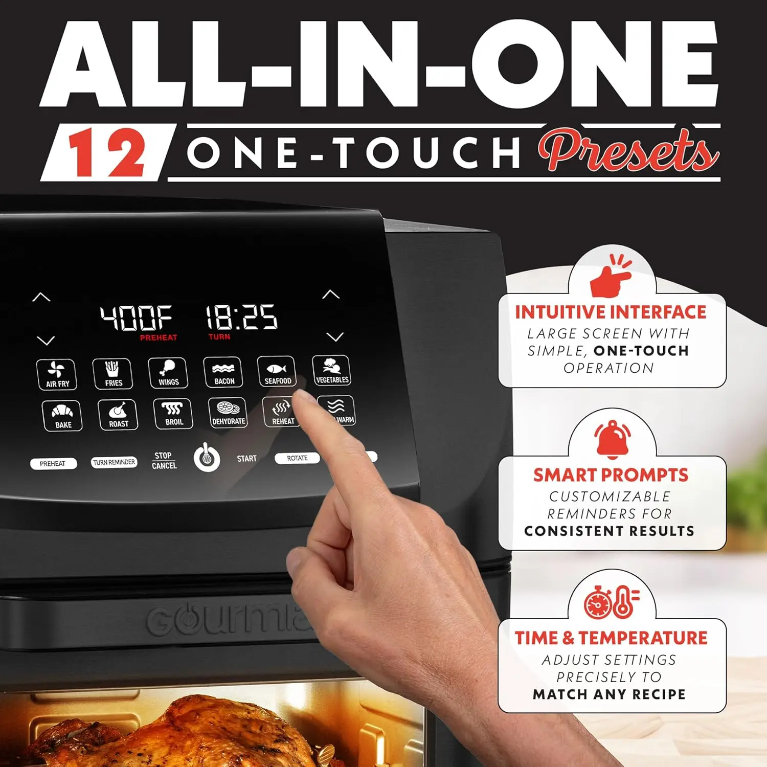 14 Qt Air Fryer Oven with Rotisserie, Digital Display, 12 Presets, Dishwasher Safe Accessories