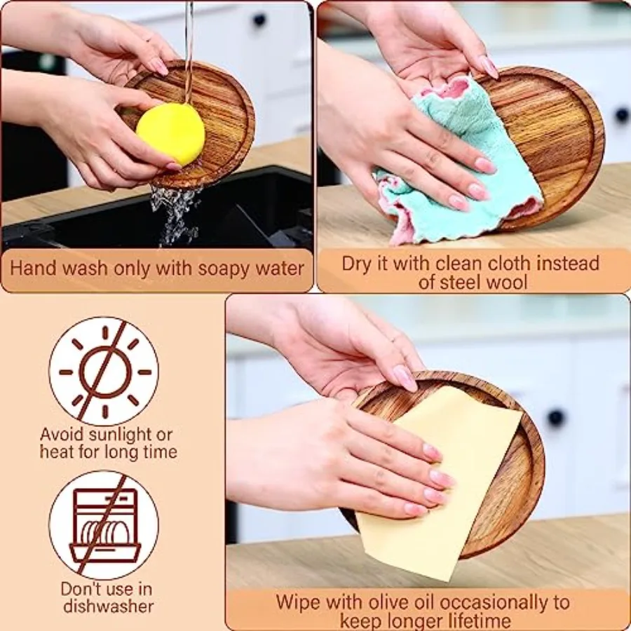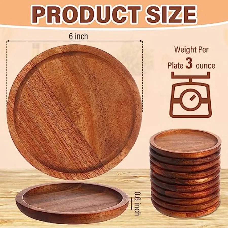20 Set Acacia Wood Dinner Plates round Wooden Charger Plates 6 Inch Serving Tray Lightwght Unbreakable Natural Dinnerware Dishe