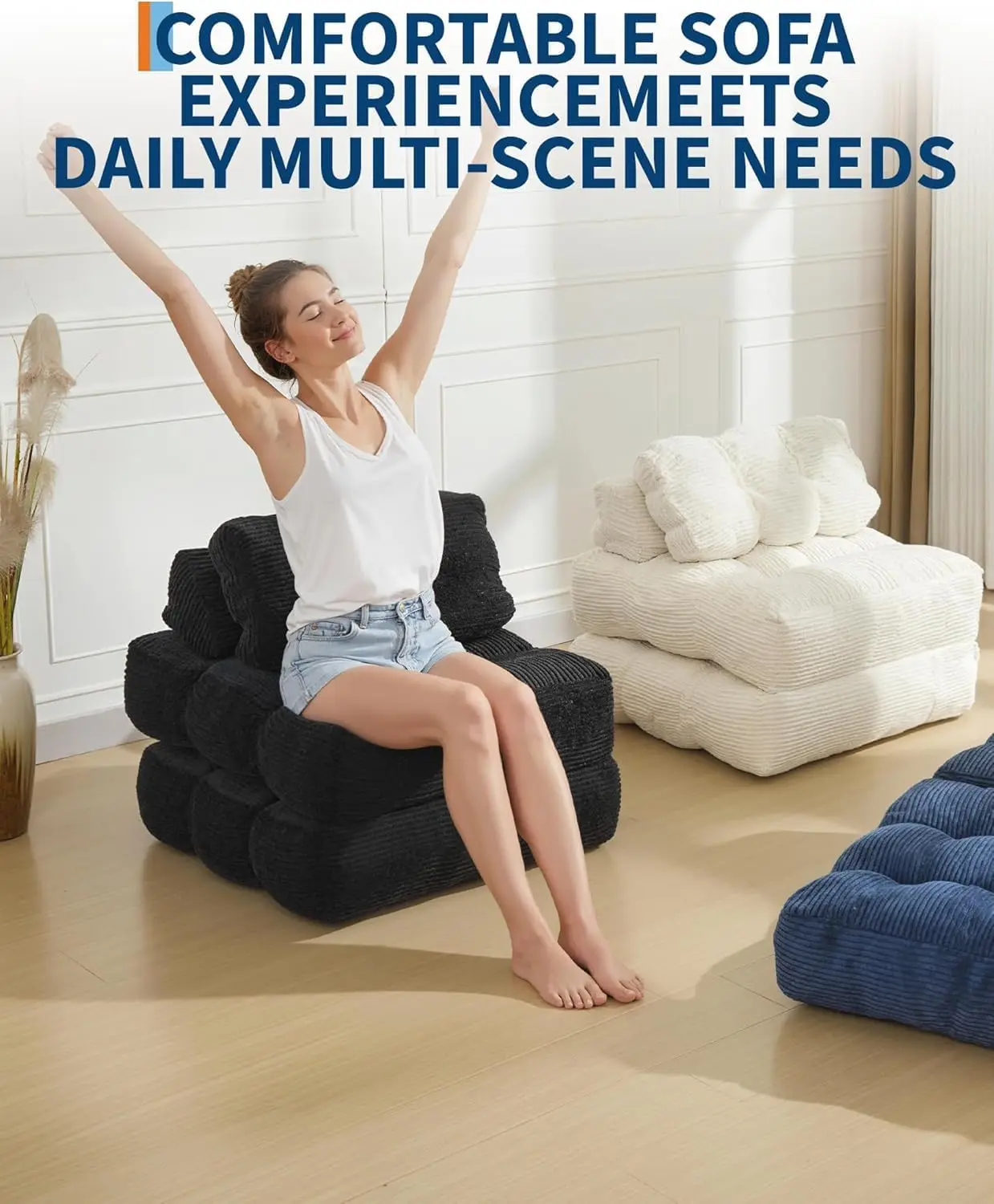 Sophisticated & Resilient Upholstery: Crafted from high-quality corded fabric, it combines distinctive visual texture with enduring performance, enhancing your room's aesthetic. The double-size configuration provides ample, comfortable space for one person, whether seated or stretched out.