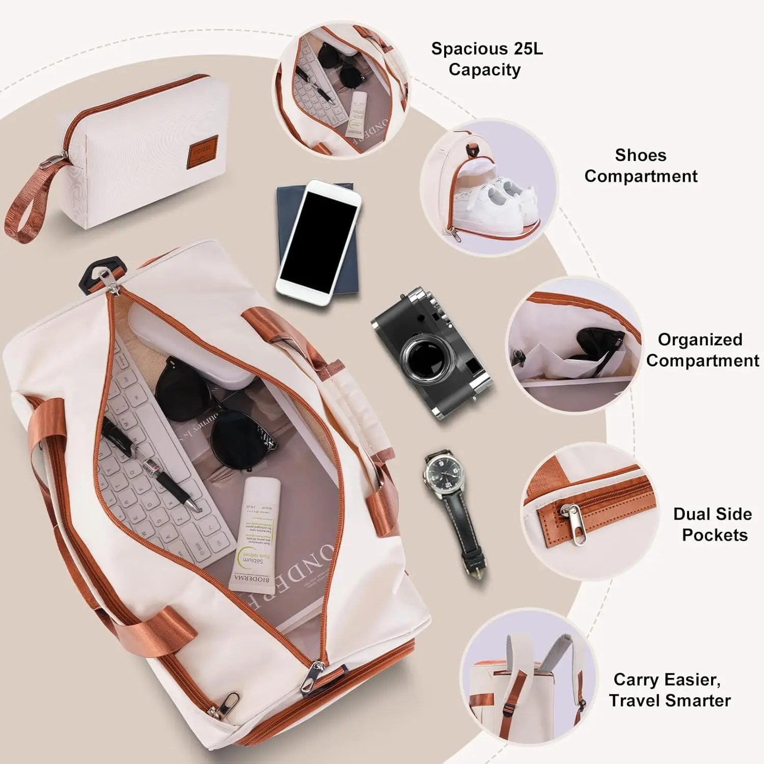 【Multifunctional Fitness Bag】The multifunctional fitness bag has hidden double straps at the bottom and a long shoulder strap, providing you with multiple ways to use it, such as a handbag, crossbody bag, or backpack. The side of the gym bag is equipped with a shoe bag and a large ventilated mesh window, and the back features a back sleeve so you can conveniently attach it to the retractable luggage handle.