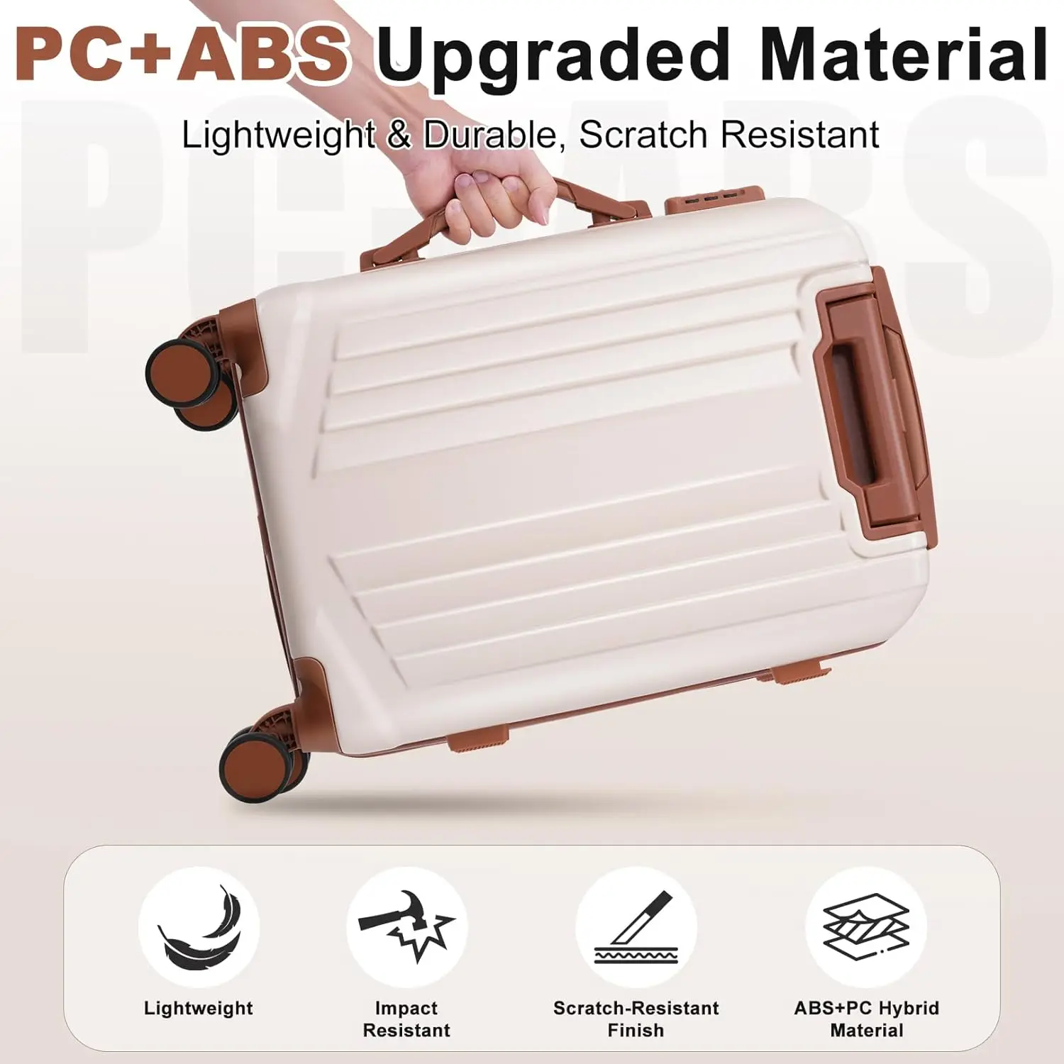 【ABS+PC Extra Durable Suitcase】This hardside luggage is made of high-quality ABS+PC materials, which is known for its lightweight, high elasticity and durability, maintaining maximum reliability even under violent impacts and scratches, keeping your luggage looking good and long-lasting after your trip. The lightweight luggage is equipped with three-stage adjustable telescopic handle and top/side handles for comfortable use.