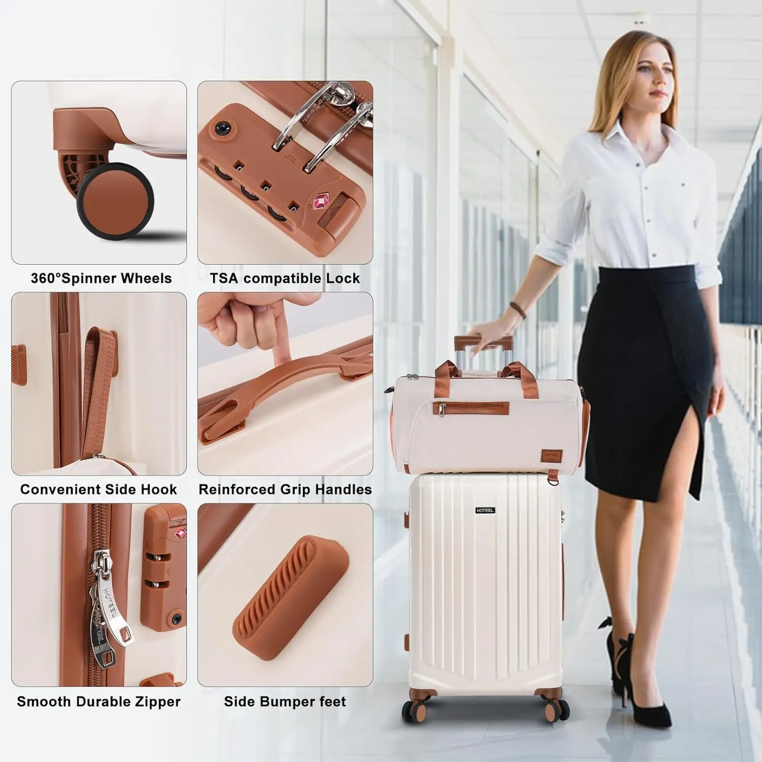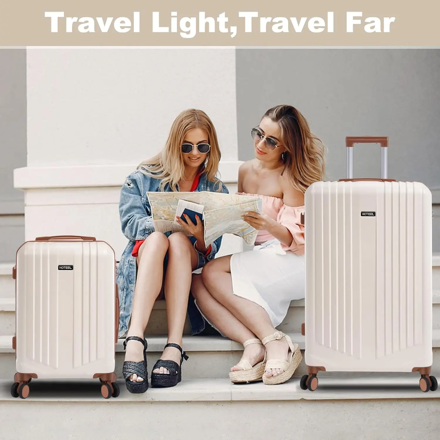 【Super Smooth Double-Wheel Spinner Wheel】The spinner wheels on this luggage sets feature a double-wheel structure, with a total of 8 wheels to help the hardshell suitcases move smoothly over various complex roads, allowing you to move freely even in crowded areas. Compared to single-wheel, double-wheel spinner wheel move more quietly, smoothly, and stably, and less likely to tip over when pushing or pulling.