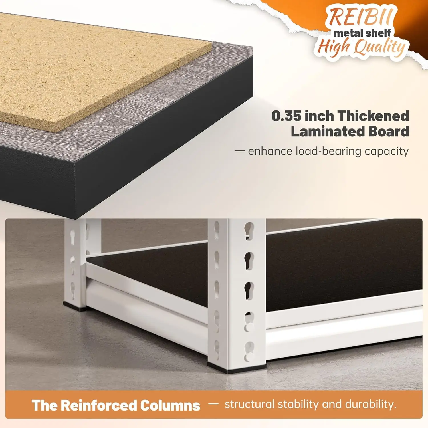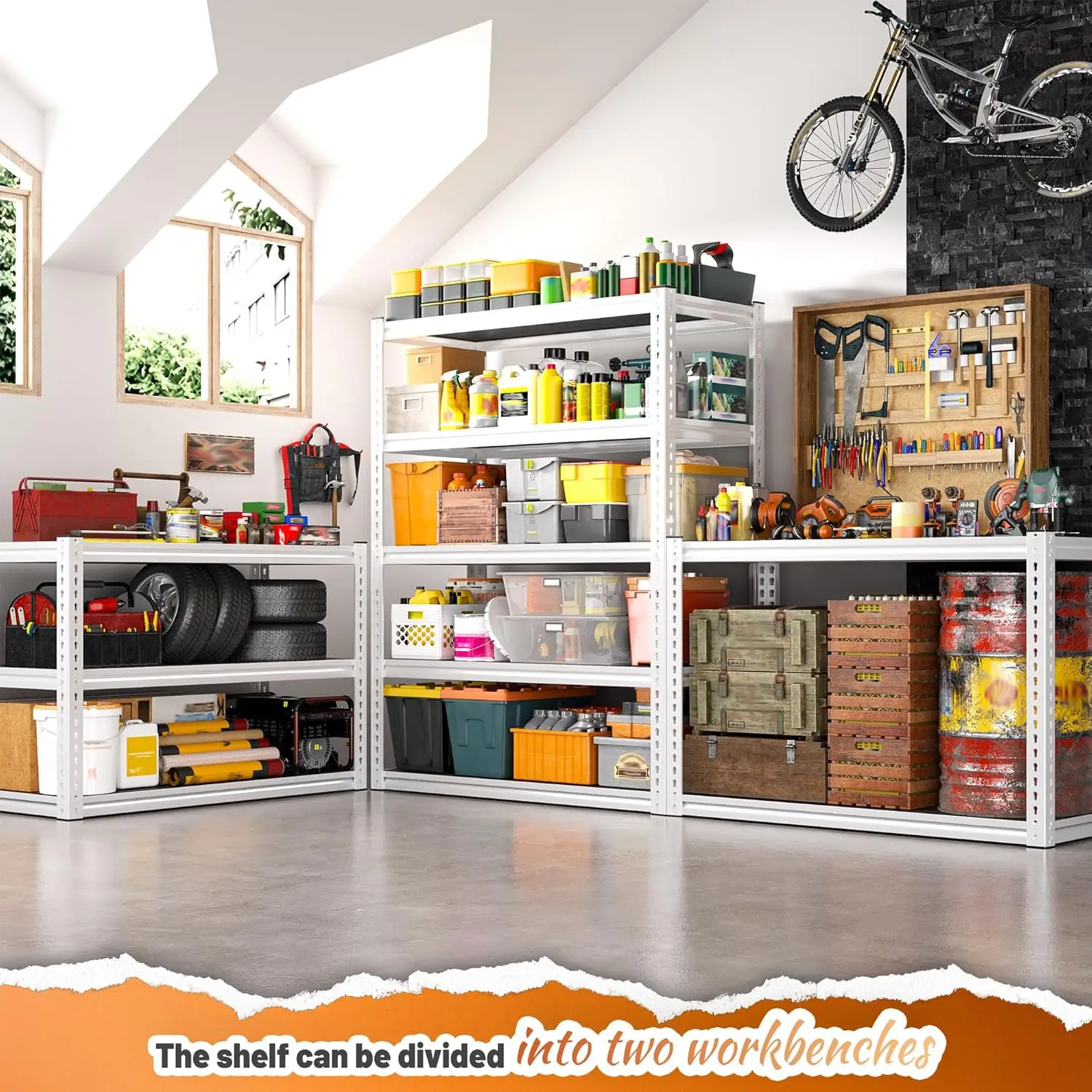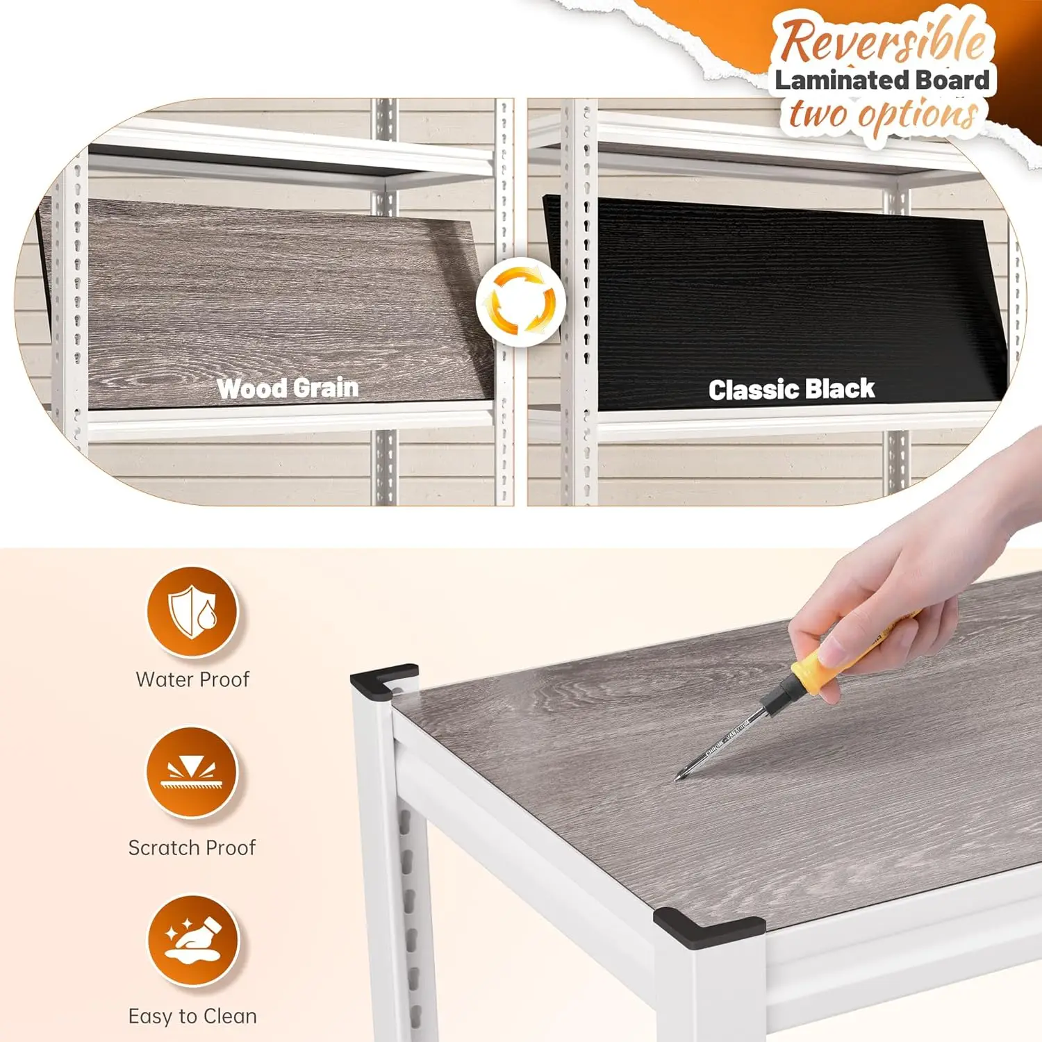 【Adjustable Shelving Unit 】With the post connector, the white shelves can be easily turned into two shorter units that serve as a table, workbench, or corner shelf for using storage space efficient. Shelving units and storage is designed with adjustable connectors. Each tier can be adjusted up and down by 1.4", so you can easily adjust up or down to accommodate your need and store items of different sizes