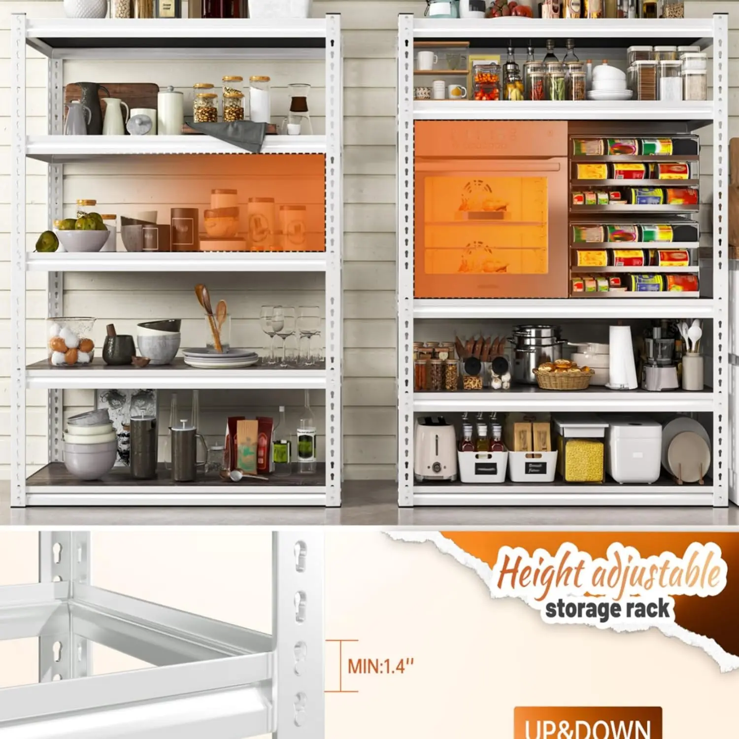 【Multipurpose Storage Rack】The metal shelving with perfect size is suitable for garage, pantry, closet, kitchen, warehouse, basement, living room, office, etc. Also, suitable for school, hospital, office and shop and more that require a lot of shelves. You can place a microwave oven, tools, books and whatever else is taking up space. The adjustable metal shelf expands your storage space, makes your home clean