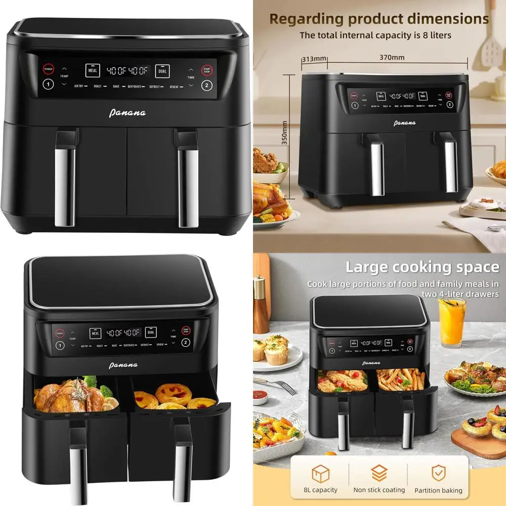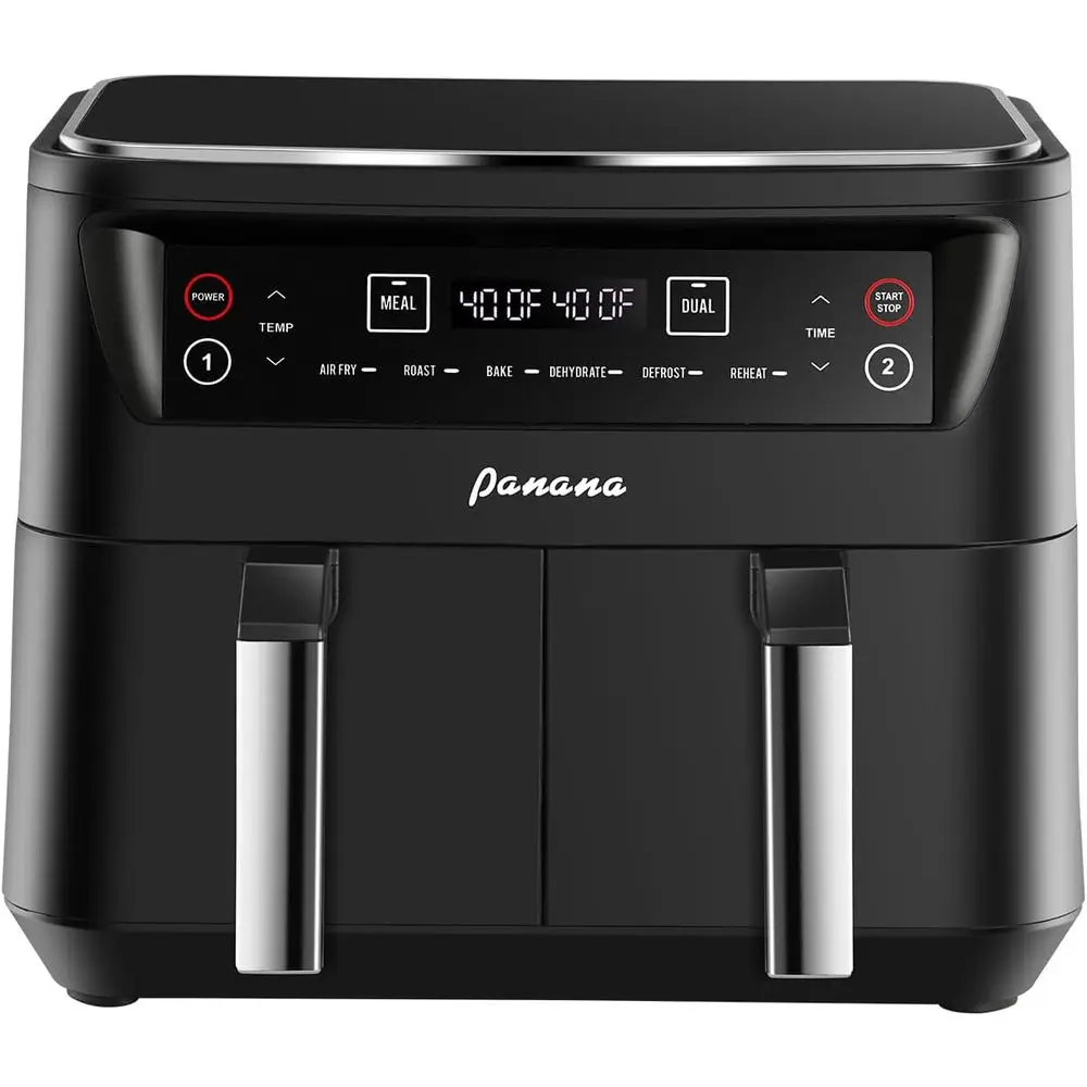 This versatile air fryer comes with six common functions: Air Fry, Roast, Bake, Dehydrate, Defrost, and Reheat. The dual-basket design is perfect for efficient and convenient family cooking.