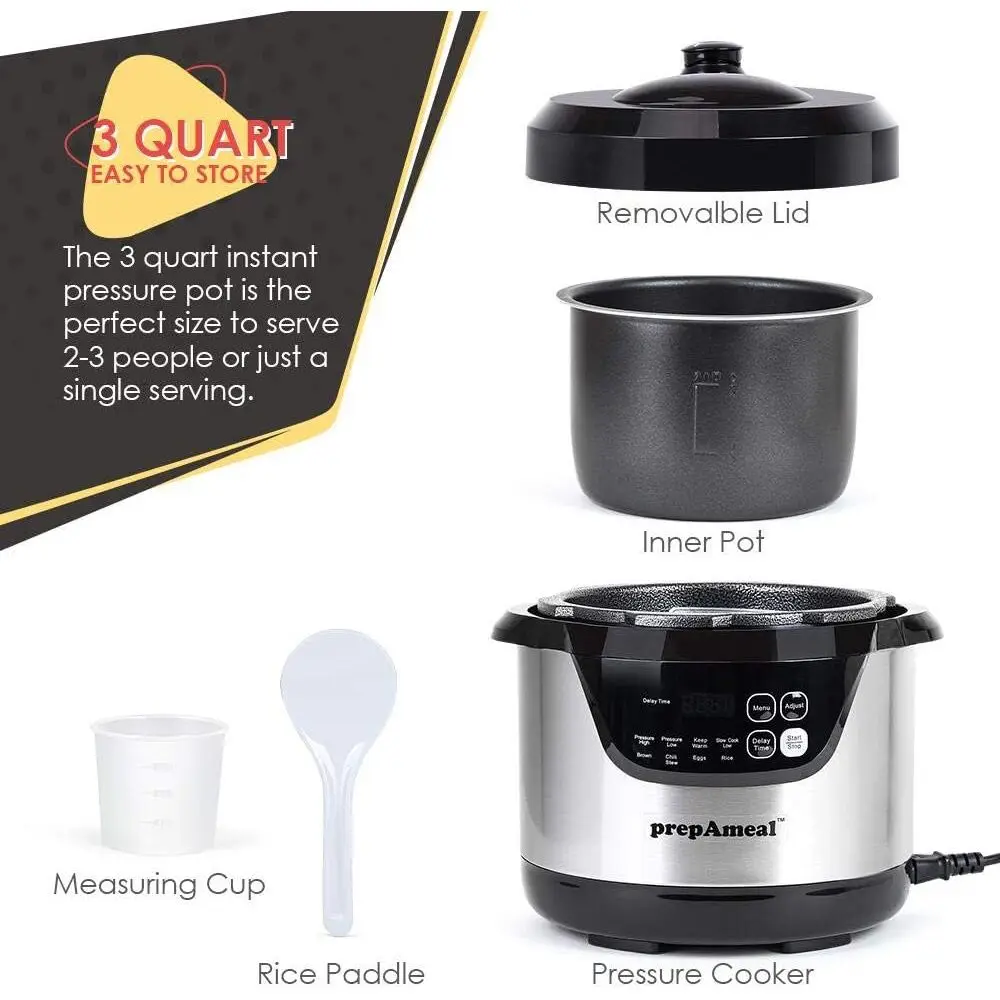 Perfect Size: The 3-quart pressure pot is the ideal size to serve 2-3 people or for a single serving, allowing you to make just enough food without wasting extra space. The compact body is also easy to store.