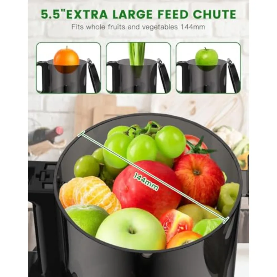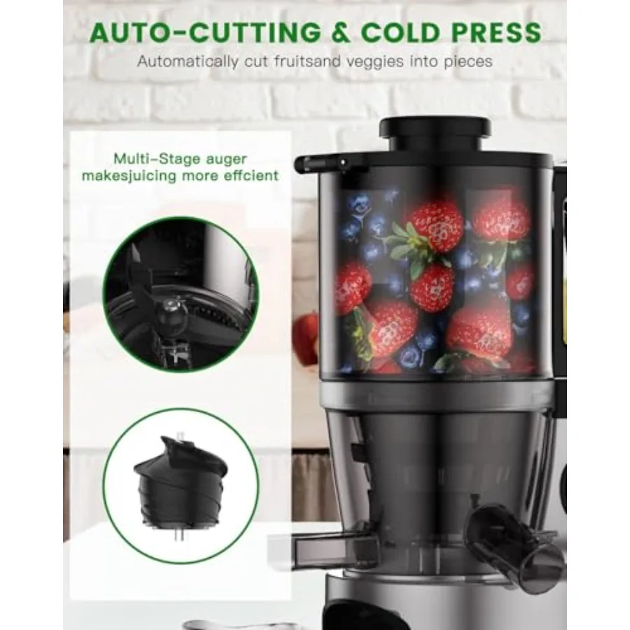 High Juice Yield with Cold Press Masticating Technology:This cold press masticating juicer operates at 60 RPM, extracting juice slowly and efficiently; it ensures maximum nutrient retention and produces pure, fresh juice, offering a superior taste and nutritional value.