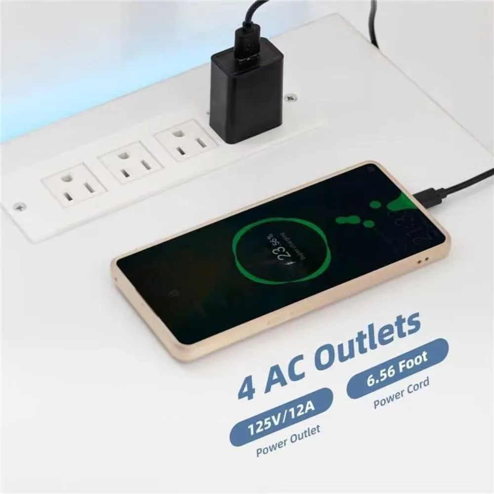 - 【Modern & Power Outlets】Modern TV stand is equipped with 4 standard plug outlets and a 6.5ft power cord, allowing you to conveniently charge your phone, WiFi router, iPad, and more