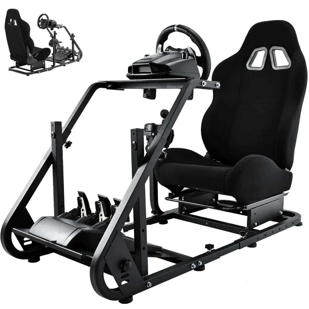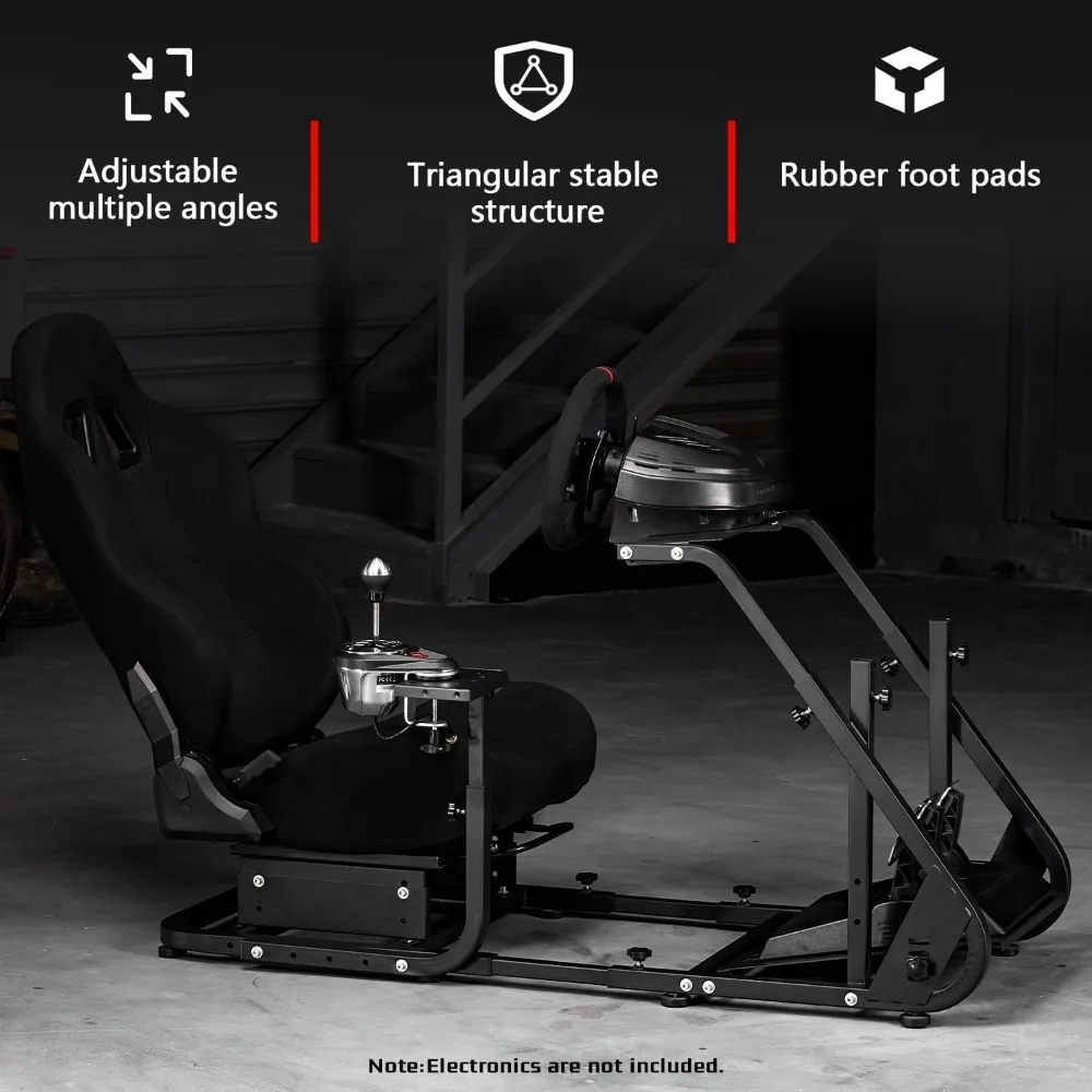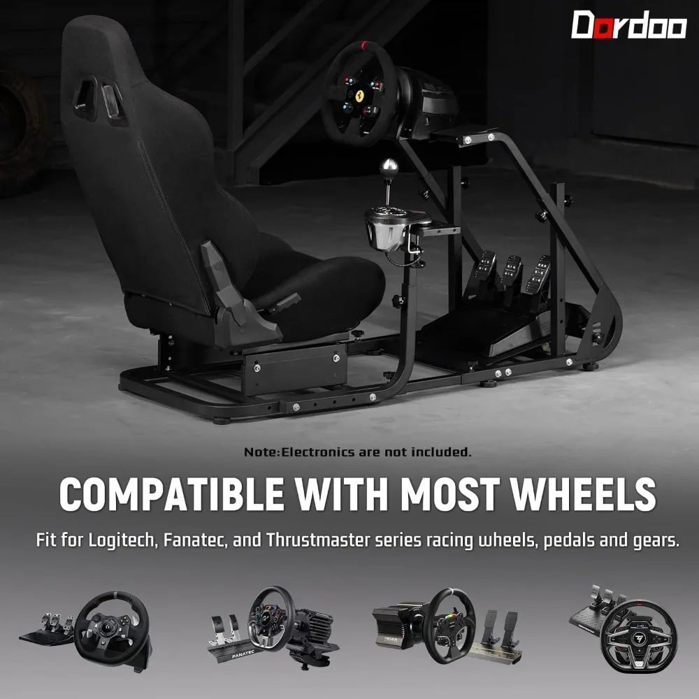 This racing simulator cockpit is designed for optimal comfort, with adjustable length to help you find the perfect posture for an enjoyable gaming experience. The gaming chair is professionally designed with an ergonomic approach, featuring dual rails and dual sliding rails for easy adjustment from 65° to 180°. It is filled with a one-piece sponge that maintains its shape even after long periods of use. The cockpit allows for better customization, with the seat, stand, steering wheel, pedals, and gear shift panel all being independently adjustable. This high degree of personalization ensures that it can be tailored to fit your unique preferences and body dimensions. It is versatile and compatible with most gaming devices on the market, including those from Logitech, Thrustmaster, Fanatec, and other related steering wheels, racing pedals, controllers, and fixture handbrake. Please note that electronic accessories are not included with this product.