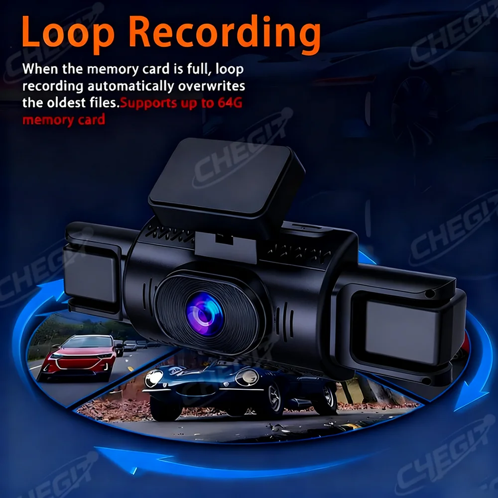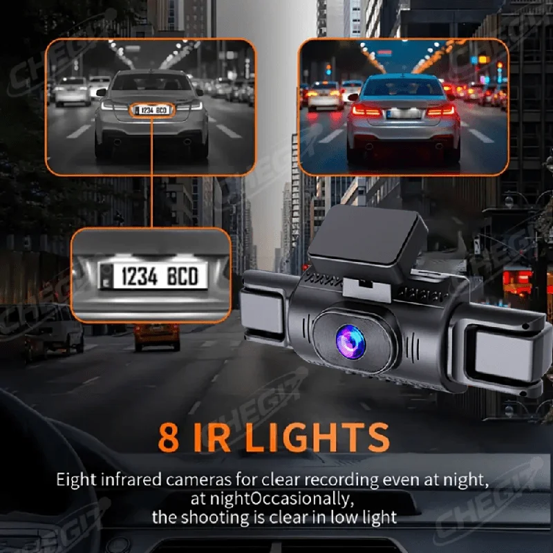 3Inch Camera 360° interior rotatable lens, with no dead angles inside and outside the car, providing panoramic view.