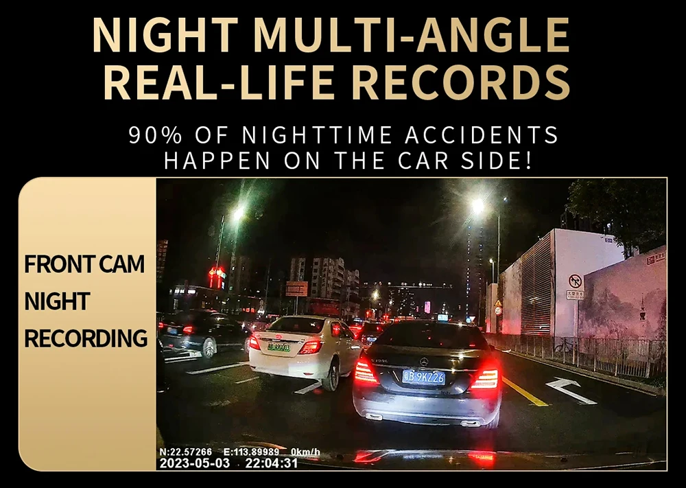 Start the intelligent parking detection mode after the engine is off, support the three recording lens motion detection, abnormal collision automatic recording, one second one frame time lapse recording.