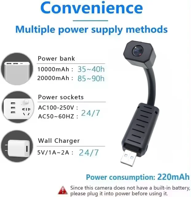 [Minimal invisible camera]: You can use the W11-wifi camera to easily realize remote viewing of children, cars, baby sitters, etc. 16mm ultra-compact camera lens, metal hose, you can easily adjust the shooting angle.