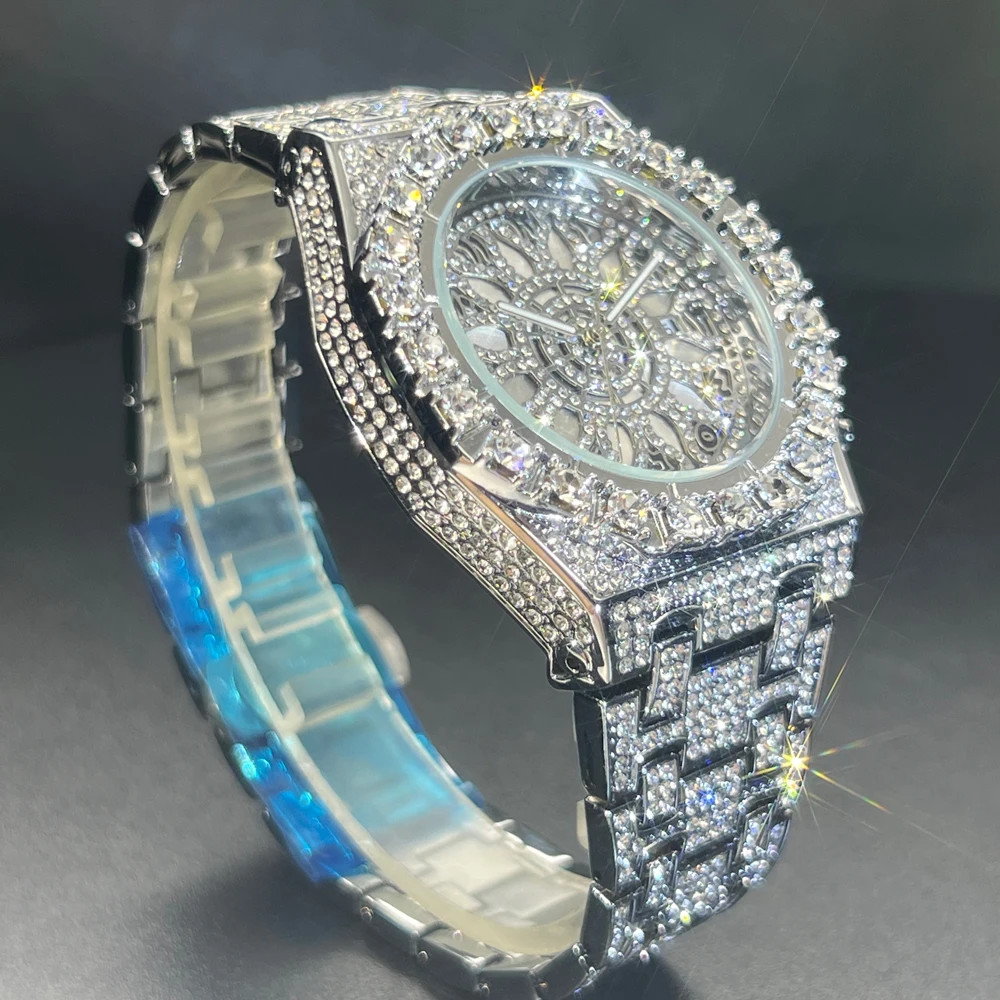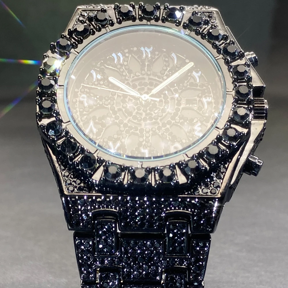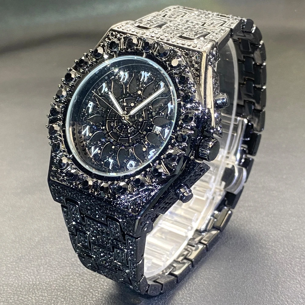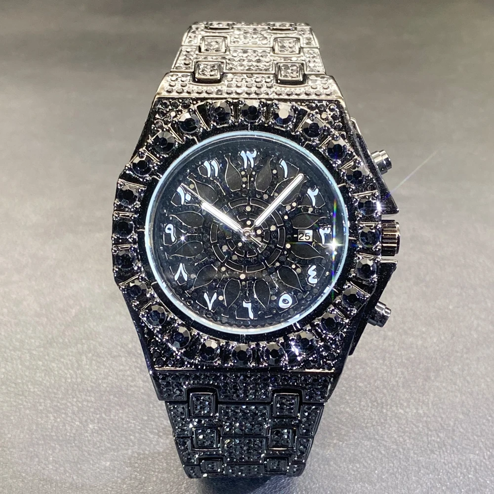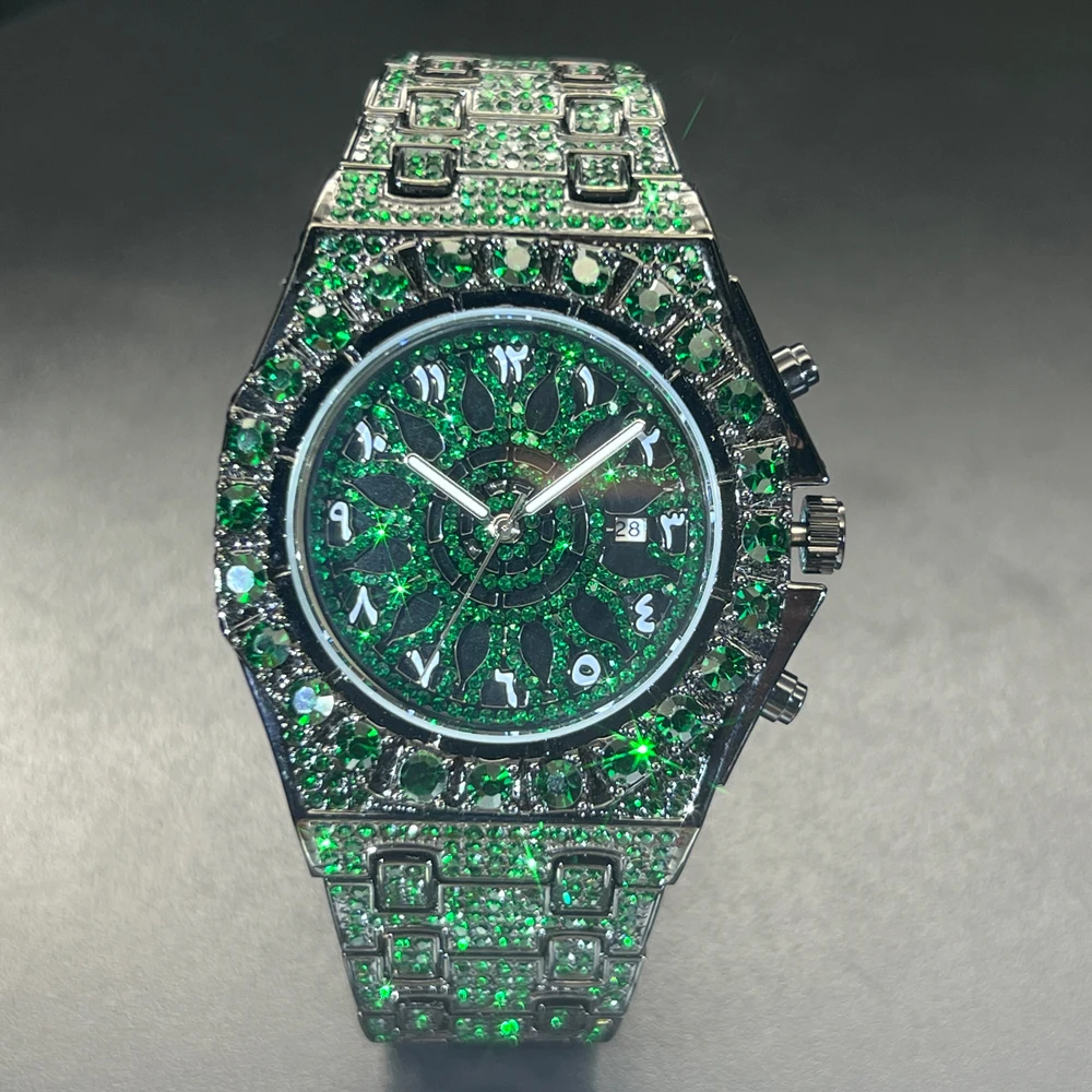 Hip Hop Wristwatch for Men Luxury Lce Out Full Diamond Watches Fashion Green Watch Wterproof Week Display Clock 2025