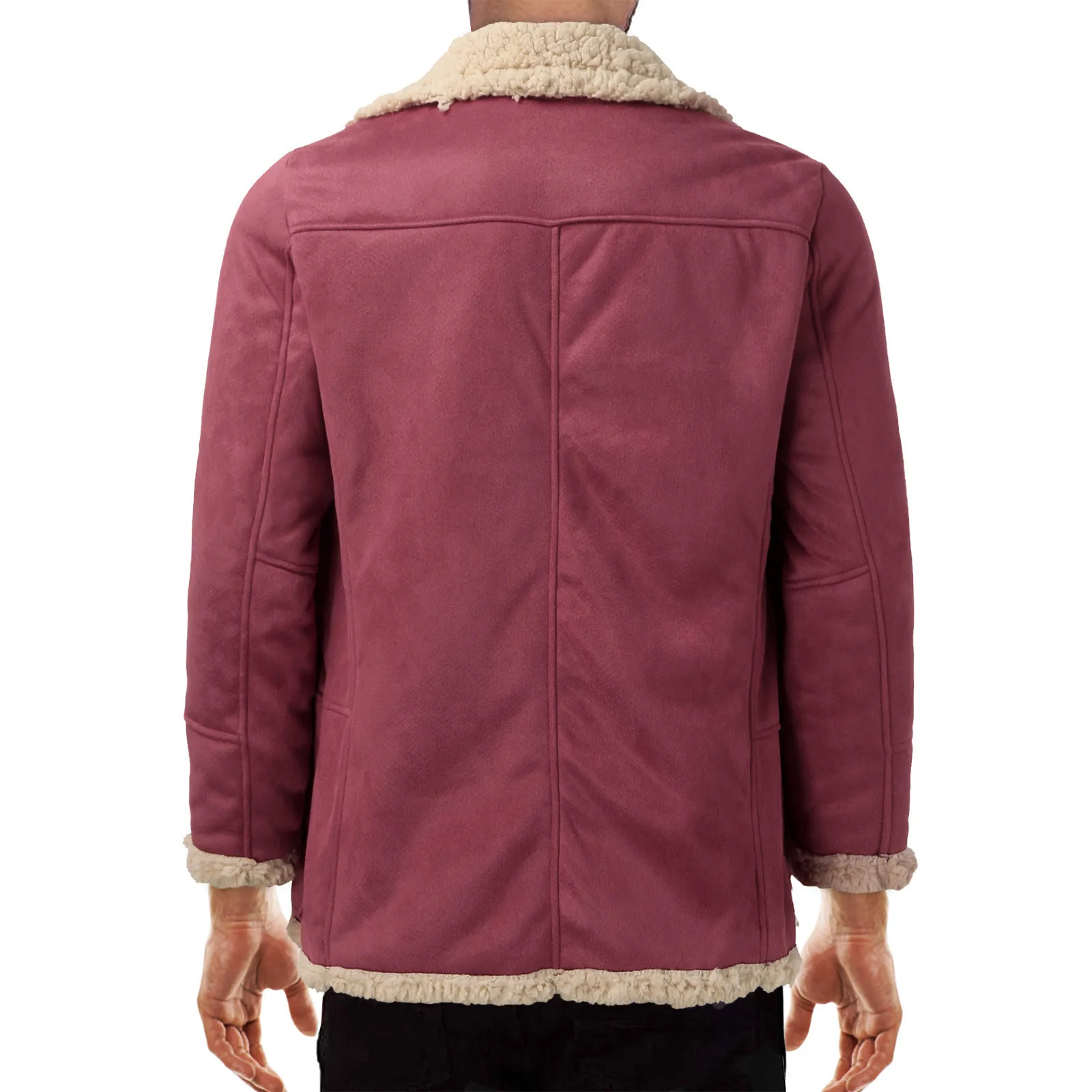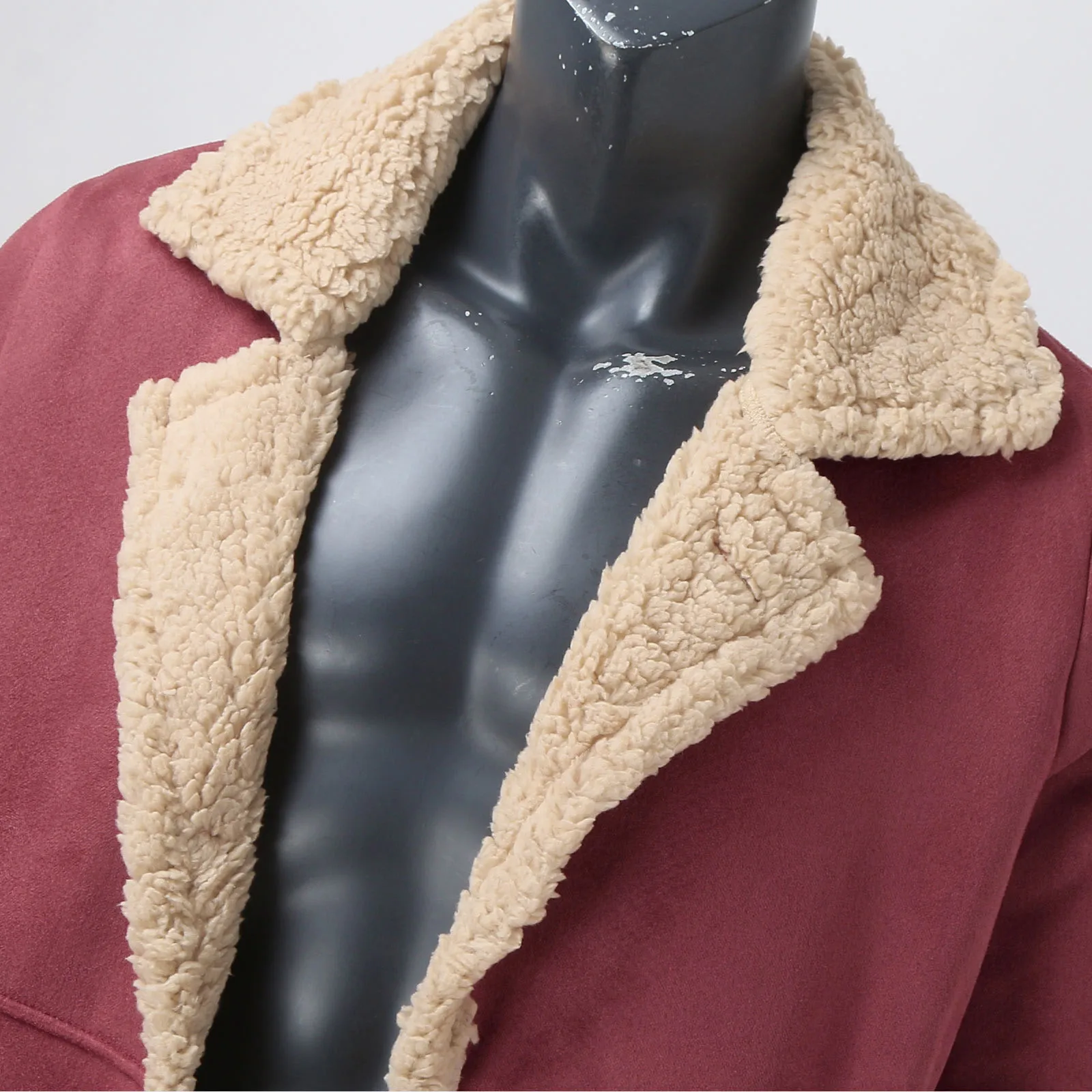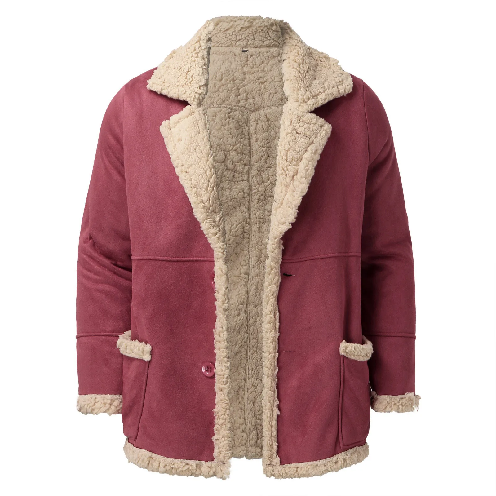 Men Plus Size Winter Coat Lapel Collar Long Sleeve Padded Leather Jacket Vintage Thicken Coat Sheepskin Zipper Jacket